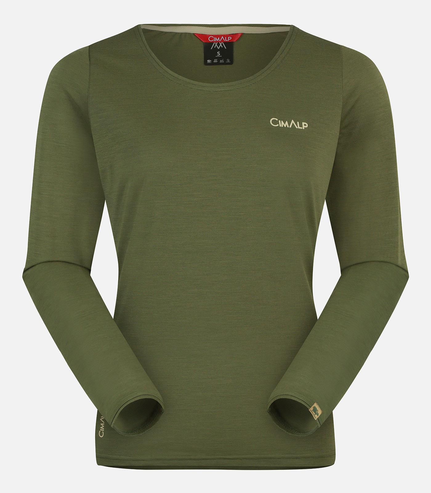 Das Langarmshirt besteht aus CimaWool®, einem von Cimalp selbst entwickeltem Stoff mit 47 % Merinowolle.